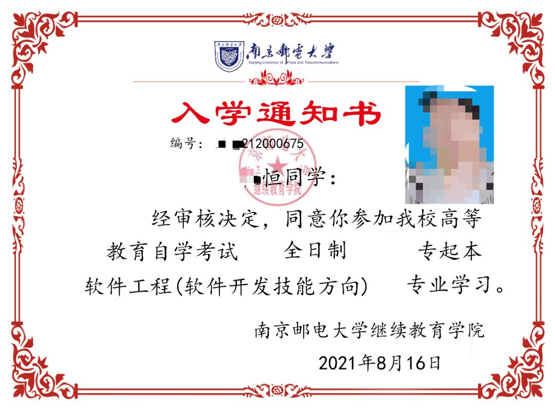 学生在校进行全日制学习,入学后的学生统一报江苏省教育考试院审核注册自考考籍,统一编制自考助学专业全日制教育班,配备专职班主任进行日常管理。学生在校学习期满,修完规定课程,经毕业鉴定合格,颁发由江苏省自考委和南京邮电大学联合署章的自考本科毕业证,符合条件者授予相应学士学位。毕业证书属于国家教育部认可的国民教育系列文凭,学信网可查。毕业生可以考研、考公、考编、出国留学等。